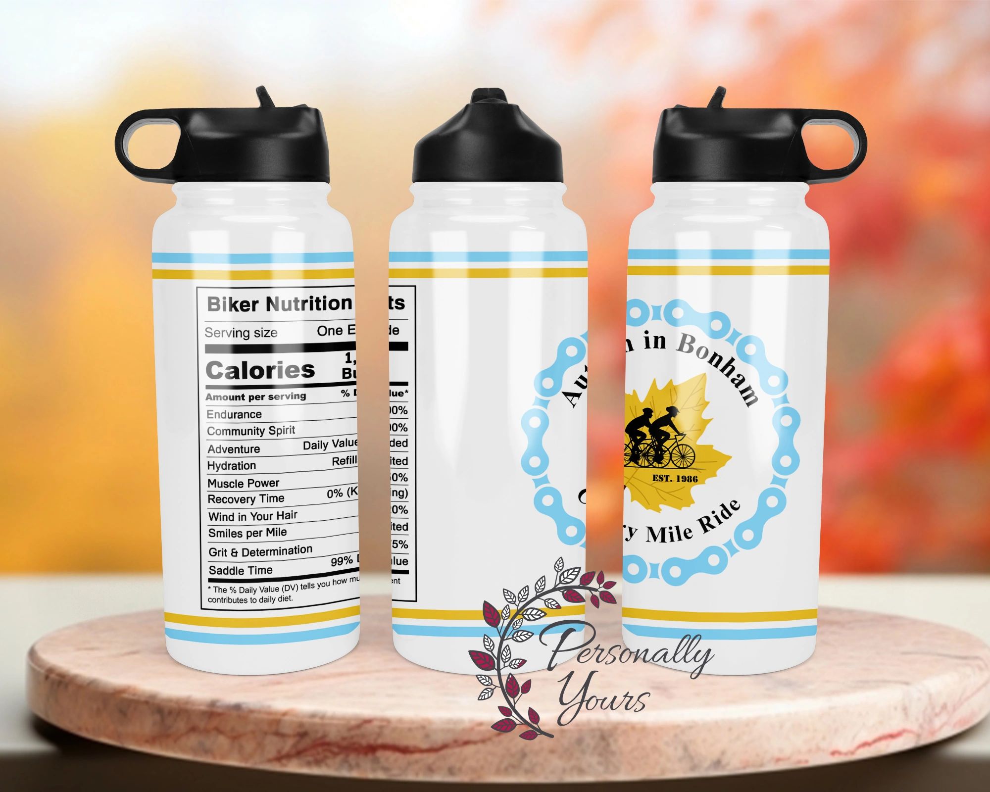 (We will not be able to personalize water bottles on-site, so pre-orders are the only way to secure a custom bottle. )